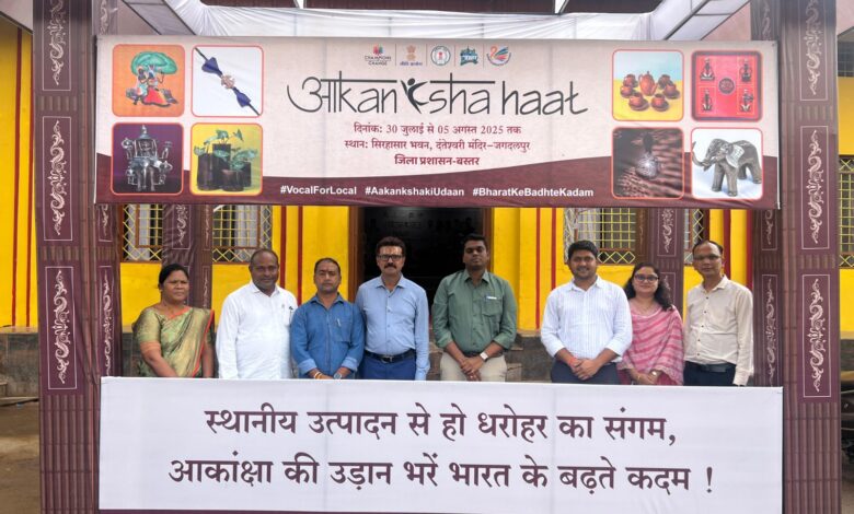 स्थानीय महिला स्व-सहायता समूहों को उनके उत्पादों के विपणन हेतु अवसर उपलब्ध कराने के उद्देश्य से आकांक्षा हाट का आयोजन सिरहासार भवन जगदलपुर में किया गया है। बुधवार को उक्त आकांक्षा हाट का शुभारंभ महापौर श्री संजय पांडेय और कलेक्टर श्री हरिस एस ने रिबन काटकर किया। इस हाट में जिले की महिला स्व-सहायता समूहों द्वारा तैयार किए गए स्थानीय उत्पादों तथा राखियों की विशेष प्रदर्शनी लगाई गई है। इस आयोजन का उद्देश्य इन महिला समूहों को एक सशक्त मंच प्रदान करना है, जिससे वे आत्मनिर्भरता की दिशा में आगे बढ़ सकें। हाट में खाद्य पदार्थ, हस्तशिल्प, पारंपरिक परिधान, सजावटी सामग्री और अन्य स्थानीय उत्पाद नागरिकों के लिए उपलब्ध है।