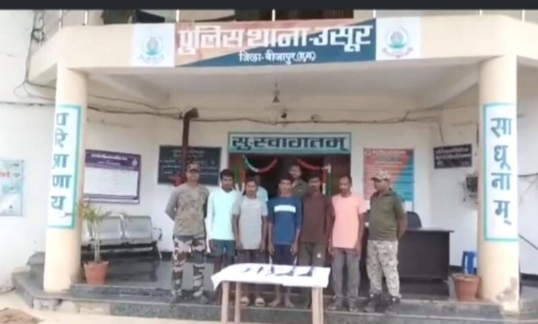 उसूर क्षेत्र से पांच नक्सली गिरफ्तार
