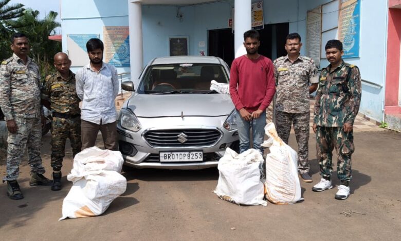 सरहदी उड़ीसा राज्य से छत्तीसगढ राज्य की ओर होने वाले अवैध मादक पदार्थ गांजा के परिवहन पर अंकुश लगाने पुलिस अधीक्षक शलभ कुमार सिन्हा अतिरिक्त पुलिस अधीक्षक माहेश्वर नाग के दिशा निर्देशन, नगर पुलिस अधीक्षक उदित पुष्कर एवं नगर पुलिस अधीक्षक आकाश श्रीमाल के पर्यवेक्षण में थाना प्रभारी निरीक्षक टामेश्वर चौहान के नेतृत्व में थाना स्तर पर टीम गठित किया गया कि -दिनांक 04.10..2024 जरिये मुखबीर सूचना मिला कि दो व्यक्ति अपने अधिपत्य के सिल्वर कलर के मारूति स्वीफ्ट डिजायर कार क्रमांक BR 01 DP 8253 में अवैध रूप से मादक पदार्थ गांजा रखकर उड़ीसा प्रांत से धनपुंजी जगदलपुर की ओर परिवहन कर रहे कि सूचना पर हमराह स्टाप के द्वारा थाना नगरनार के सामने एनएच 63 मेन रोड के पास पहुंच कर नाकाबंदी किये कुछ समय बाद सिल्वर कलर के मारूति स्वीफ्ट डिजायर कार कमांक BR 01 DP 8253 आता दिखाई दिया जिसे रोककर चेक किये चालक का नाम पता पुछने पर अपना नाम अमित सिंह पिता मुनीब सिंह जाति अहिर उम्र 26 वर्ष निवासी ग्राम नरैली पोस्ट छाता थाना दुर्गावती जिला भभुआ (बिहार) का एवं कार के सामने सीट पर बैठा हुआ व्यक्ति अपना नाम प्रिंस यादव पिता सुरेश यादव जाति अहिर उम्र 21 वर्ष निवासी ग्राम जिगना पोस्ट सिसौदा कला थाना धीना जिला चंदौली (उत्तर प्रदेश) का रहने वाले बताये मौके पर आरोपीयो के मारूति स्वीफ्ट डिजायर कार को चेक करने पर कार के डिक्की में छिपाया 04 प्लास्टिक बोरियो में 08 पैकेट कुल जुमला वजन 81.005 किलोग्राम मादक पदार्थ गांजा कुल किमती 8,10,000/ रूपये को बरामद कर जप्त किया गया एवं परिवहन में प्रयुक्त वाहन मारूति स्वीफ्ट डिजायर कार क्रमांक BR 01 DP 8253 कीमती 5,00,000/ रूपये एवं एक मोबाईल फोन कीमती 20,000 / रूपये कुल जुमला कीमत 13,30,000/ रूपये को जप्त किया गया। आरोपिया का कृत्य अपराध धारा 20 (ख) ii (ग) एनडीपीएस एक्ट का पाये जाने से आरोपीयो के खिलाफ अपराध सदर कायम कर विवेचना में लिया गया। आरोपी को न्यायिक रिमांड पर माननीय न्यायालय के समक्ष पेश किया जाता है।