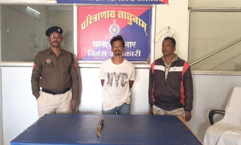 आरोपी द्वारा चाकु लेकर लोगो को डरा धमका रहा था,थाना नगरनार क्षेत्र की घटना।