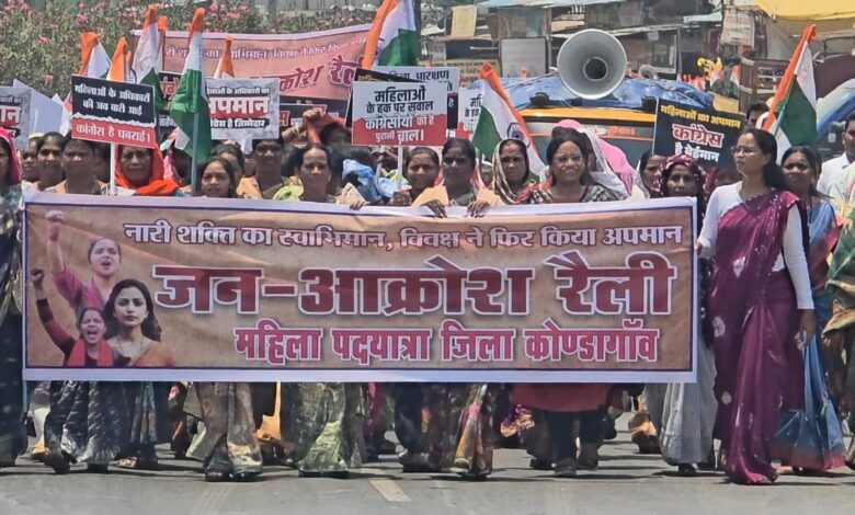 कोण्डागांव, 26 अप्रैल।नारी शक्ति वंदन अधिनियम के समर्थन में भारतीय जनता पार्टी ने रविवार को कोण्डागांव में जोरदार शक्ति प्रदर्शन करते हुए विशाल जन आक्रोश रैली और महिला पदयात्रा का आयोजन किया। भाजपा जिला कार्यालय अटल सदन से शुरू हुई इस रैली का नेतृत्व भाजपा की राष्ट्रीय उपाध्यक्ष एवं विधायक लता उसेंडी ने किया, जिसमें हजारों की संख्या में महिलाओं ने उत्साहपूर्वक भाग लिया।