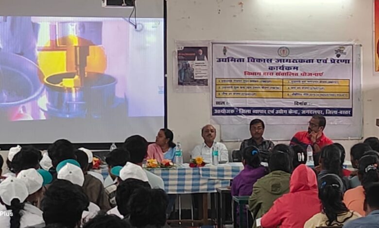 युवाओं को स्वरोजगार की ओर आकर्षित करने हेतु सोमवार को शासकीय औद्योगिक प्रशिक्षण संस्थान आड़ावाल जगदलपुर में एक दिवसीय उद्यमिता विकास जागरूकता शिविर का आयोजन क्षेत्रीय व्यापार एवं उद्योग केन्द्र जगदलपुर के द्वारा किया गया है। उक्त जागरूकता शिविर में आईटीआई सहित पॉलीटेक्निक कॉलेज एवं आरसेटी के प्रशिक्षणार्थियों को विभाग में संचालित प्रमुख स्वरोजगार योजनाओं प्रधानमंत्री सूक्ष्म खाद्य उद्यम उन्नयन योजना एवं प्रधानमंत्री रोजगार सृजन कार्यकम के तहत स्वयं का रोजगार स्थापित करने हेतु प्रेजेण्टेशन के माध्यम से जानकारी दी गई। जिसमें प्रमुख रूप से प्रधानमंत्री सूक्ष्म खाद्य उद्यम उन्नयन योजनान्तर्गत प्रेजेण्टेशन में स्थानीय उत्पाद कोदो-कुटकी, इमली एवं मुनगा से बनाए जा रहे विभिन्न उत्पादों का विडियो रूपांतरण भी दिखाया गया। उद्यमिता विकास जागरूकता शिविर में क्षेत्रीय व्यापार एवं उद्योग केन्द्र जगदलपुर के मुख्य महाप्रबन्धक श्री अजित सुन्दर विलुंग द्वारा प्रशिक्षणार्थियों को कार्यालय में संचालित योजनाओं के वर्तमान परिस्थिति को देखते हुए स्वयं का रोजगार स्थापित करने हेतु प्रेरित कर हरसंभव सहयोग प्रदान करने हेतु आश्वस्त किया गया ।