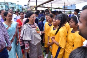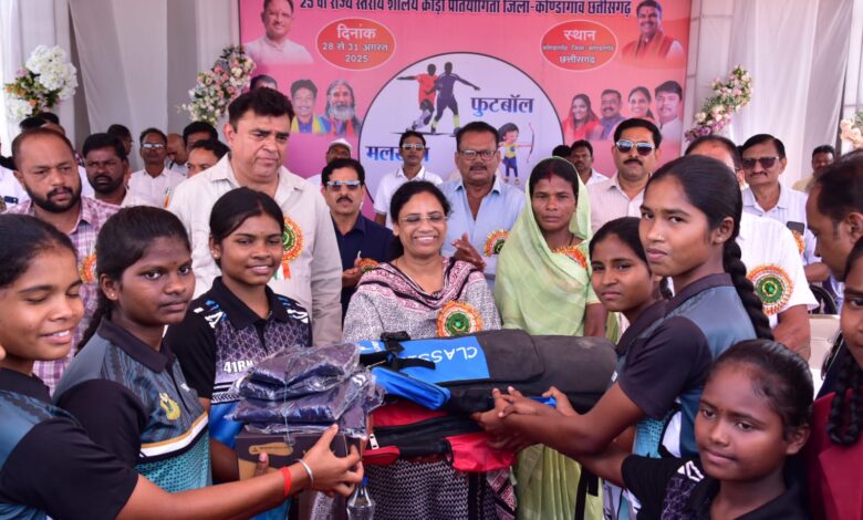 बस्तर विकास प्राधिकरण की उपाध्यक्ष एवं कोंडागांव विधायक सुश्री लता उसेंडी ने आज स्थानीय विकास नगर स्टेडियम में 25वीं राज्य स्तरीय शालेय क्रीड़ा प्रतियोगिता का शुभारंभ किया। यह प्रतियोगिता 28 अगस्त से 31 अगस्त 2025 तक चलेगा, जिसमें राज्य के रायपुर, बस्तर, दुर्ग, बिलासपुर और सरगुजा संभाग के लगभग 570 खिलाड़ी फुटबाल, तीरंदाजी और मलखंभ खेलों में अपनी प्रतिभा दिखाएंगे। कार्यक्रम में विधायक सुश्री उसेण्डी ने प्रतियोगिता के शुभारंभ की घोषणा की। इस दौरान खिलाड़ियों द्वारा आकर्षक मार्च पास्ट किया गया।