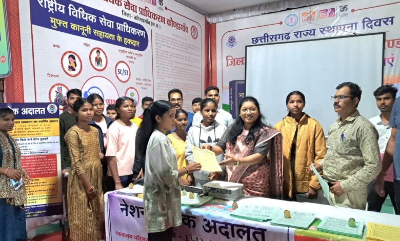 प्रधान जिला एवं सत्र न्यायाधीश/अध्यक्ष जिला विधिक सेवा प्राधिकरण कोण्डागांव श्रीमती किरण चतुर्वेदी के मार्गदर्शन एवं निर्देशानुसार विकास नगर स्टेडियम कोण्डागांव में छत्तीसगढ़ राज्य स्थापना दिवस के रजत जंयती वर्ष 2025 के अवसर पर जिला विधिक सेवा प्राधिकरण कोण्डागांव के द्वारा रजत जंयती के तीसरे दिन स्टाल लगाकर आमजनो को दी विधिक जानकारी।