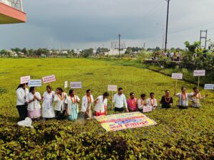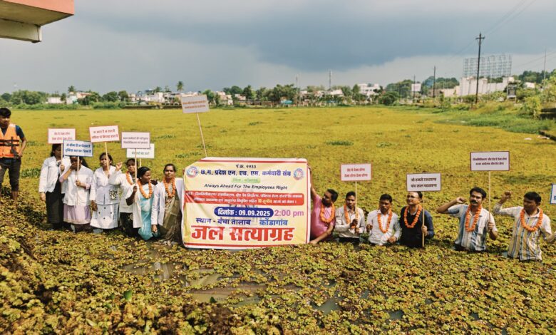 विगत 20 वर्षों से कार्यरत राष्ट्रीय स्वास्थ्य मिशन के अंतर्गत प्रदेशभर के 16 हजार से अधिक संविदा कर्मचारी अपनी 10 सूत्रीय मांगों को लेकर अनिश्चितकालीन हड़ताल पर डटे हुए हैं। लगातार पखवाड़े भर से आंदोलनरत ये कर्मचारी अब सरकार का ध्यान आकर्षित करने के लिए नए-नए तरीकों से प्रदर्शन कर रहे हैं। इसी कड़ी में मंगलवार को कोण्डागांव जिले के 581 संविदा कर्मचारियों ने एनएच-30 पर स्थित बंधा तालाब में जलकुंभी भरे गंदे पानी में खड़े होकर जल सत्याग्रह किया।