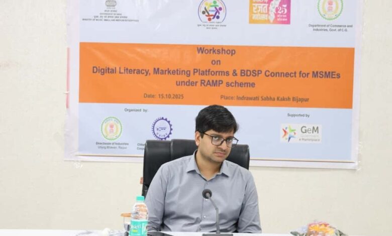 बीजापुर। जिले में RAMP (Raising and Accelerating MSME Performance) योजना के अंतर्गत Government e-Marketplace (GeM) पोर्टल पर एक दिवसीय प्रशिक्षण कार्यशाला का आयोजन किया गया।