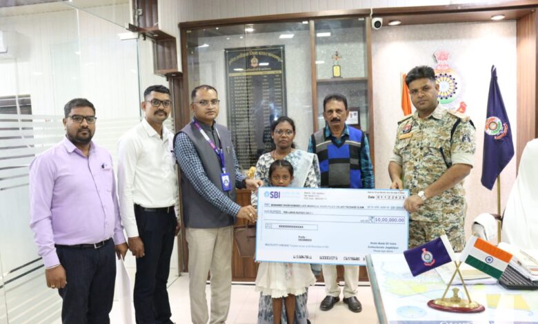 जिला बस्तर पुलिस बल में पदस्थ स्व. श्री मन्नूलाल सोरी आरक्षक के पद पर दिनांक 03.10.2008 को भर्ती होकर कार्यरत थे जिनका दिनांक 08.09.2025 को आकस्मिक मृत्यु होने पर एवं स्व. श्री प्रशंात विश्वास आरक्षक के पद पर दिनांक 21.07.1993 को भर्ती होकर कार्यरत थे जिनका दिनांक 07.10.2025 को आकस्मिक मृत्यु होने पर भारतीय स्टेट बैंक जगदलपुर में पुलिस सैलेरी पैकेज के तहत् बचत खाता होने की सुविधा के तहत क्रमश: रूपये 10,00,000/- (दस लाख रूपये) पत्नि श्रीमती भवानी सोरी एवं रूपये 10,00,000/- (दस लाख रूपये) पत्नि श्रीमती शिखा विश्वास को पुलिस अधीक्षक श्री शलभ कुमार सिन्हा (भापुसे)के मार्गदर्शन एवं उपस्थति में उप निरीक्षक (अ) श्री विनोद चेरियान एवं श्री मनीष ब्रांच मैनेजर, भारतीय स्टेट बैंक कलेक्टेªट शाखा जगदलपुर के द्वारा दिनांक 28.11.2025 को चेक के माध्यम से भुगतान किया गया।