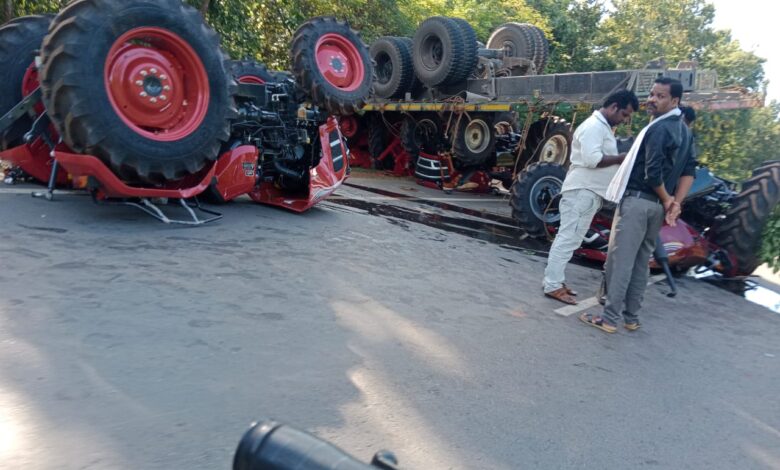 *अनियंत्रित होकर ट्रेलर पलटी, नई महिंद्रा ट्रैक्टर क्षतिग्रस्त.*